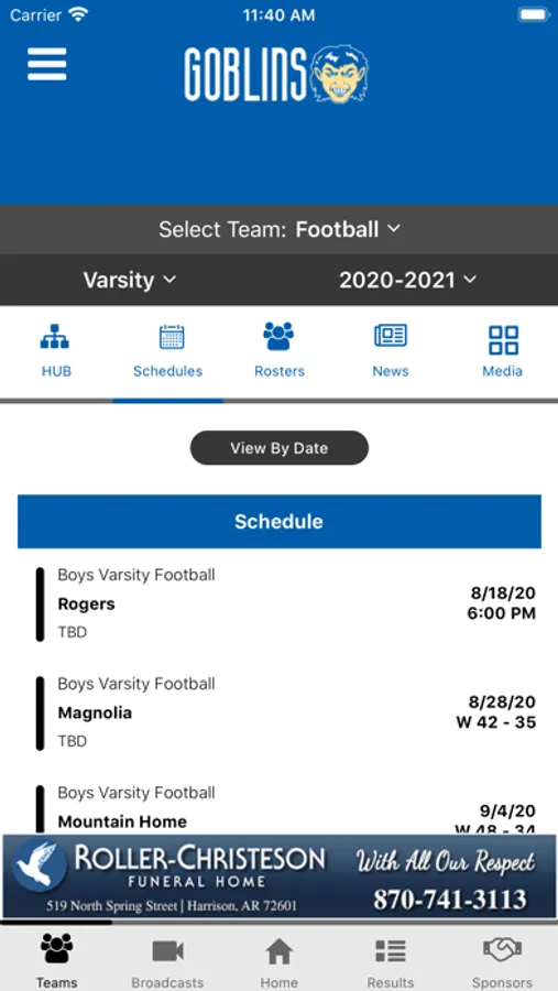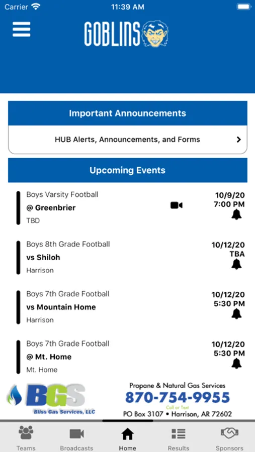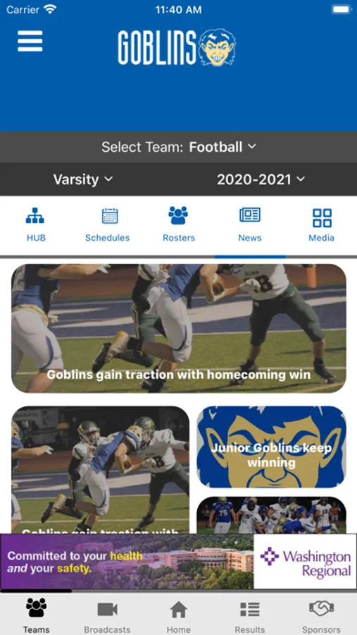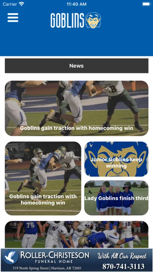 Content is managed by the Harrison Goblins Athletic Department with help of high school students gaining valuable access to emerging and mobile technologies.
