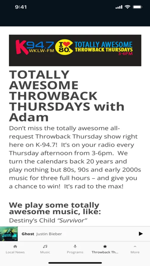 K 94.7 WKLW FM broadcasts from Paintsville, Kentucky and is the exclusive home to the Paintsville High School Tigers. WKLW FM plays the hottest Adult Contemporary hits in the country. Join Adam Preece for Up and At Em' with Adam each weekday morning and each Thursday for Throwback Thursdays. WKLW FM is online at wklw.com, and K 94.7 is on air, online, and on mobile!