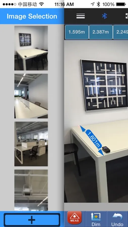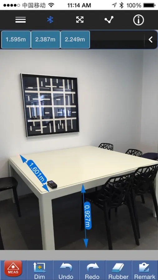 2.The measured data from Laser Distance Meter can transfer to iPhone via Bluetooth and display in the scene.