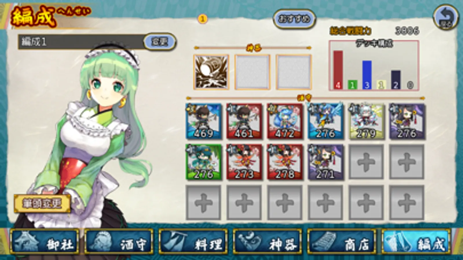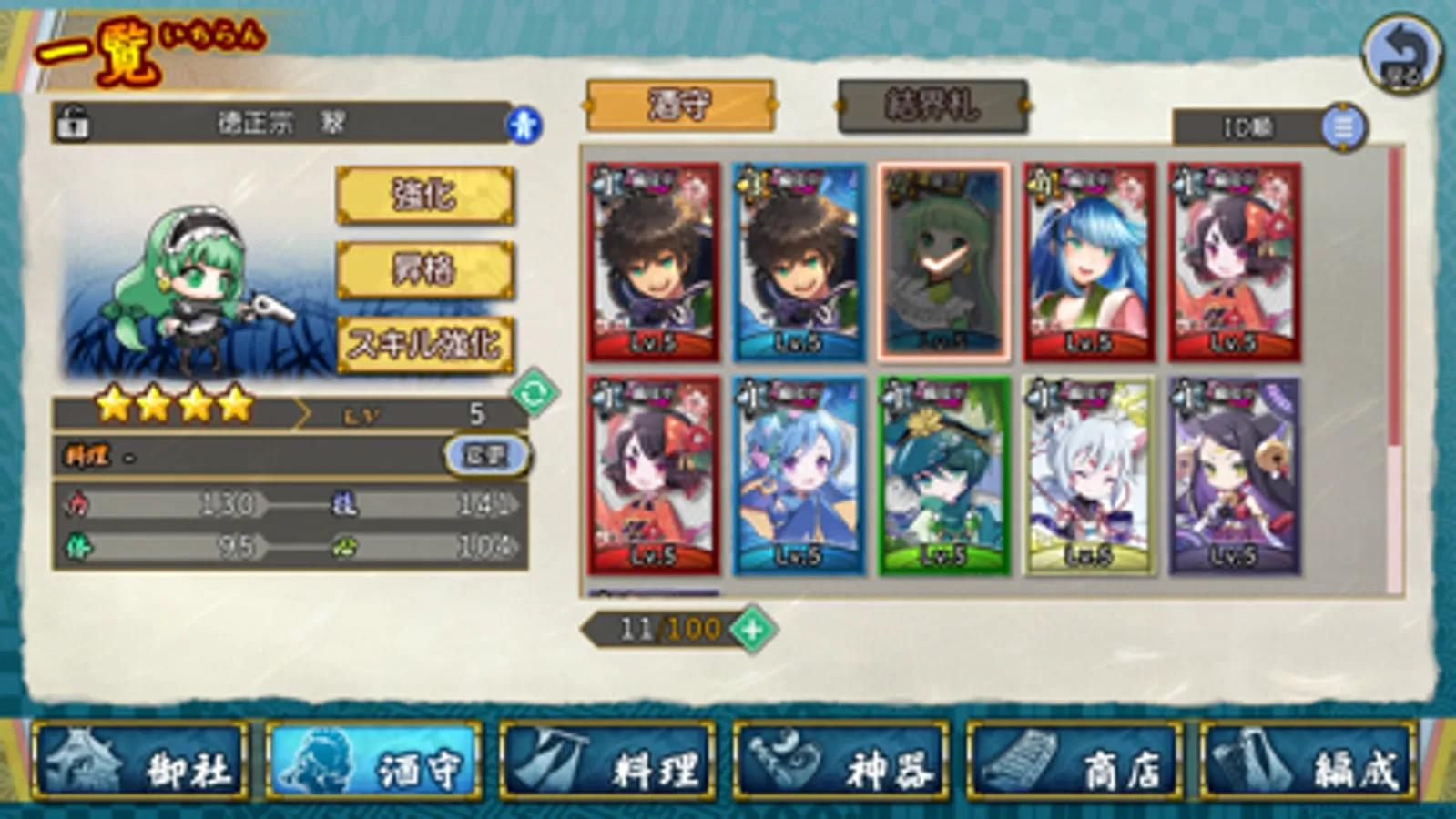 完成した『お酒』を御社(オヤシロ)に奉納する事で、新たな『酒守』を召喚!
