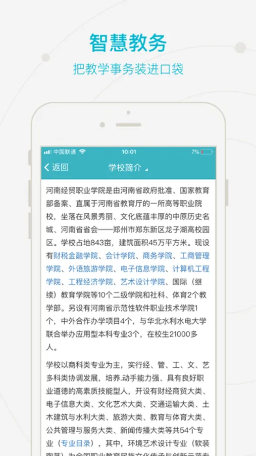 智慧经贸移动APP充分利用学校网络与信息技术中心的资源优势,结合校内各门户网站、管理系统、教学科研协作应用平台内容,打破信息壁垒、实现数据共享、便捷师生查询、助力教学科研,为经贸师生提供一站式的智慧校园移动服务。