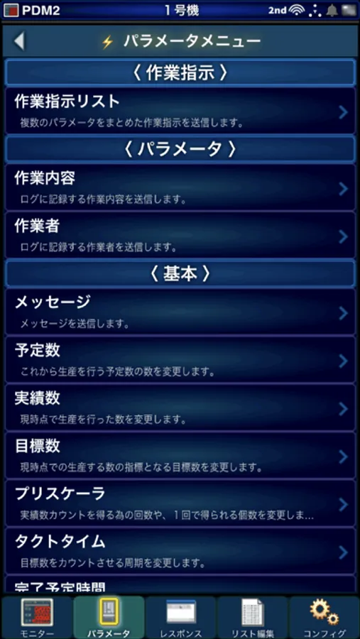 パラメータ / メッセージ / 就業時間 / スケジュール等、現場への指示を送信する事も可能となっております。