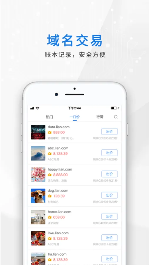 1. 可信任的商用共识算法,域名交易操作简单、安全、高效。交易记帐轻松上链,每笔交易透明可查、可验、可信、可追溯。
