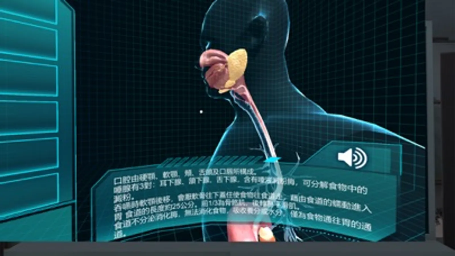 使學生能透過虛擬實境(VR)教材,認識消化器官的解剖位置、食物經過消化管的順序與功能,以及消化腺的位置及功能。