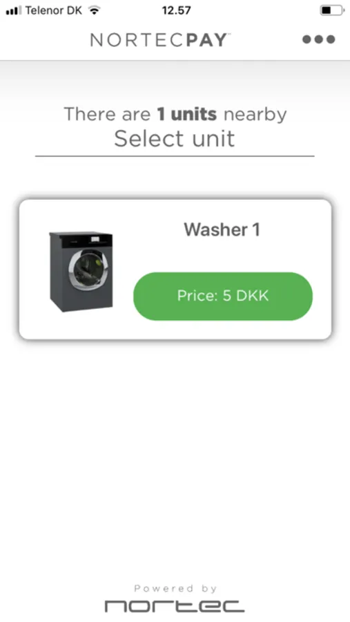 Once you have installed NortecPay, you are immediately ready to use and pay with the app. All you have to do is to be near the unit you wish to operate. When you open the app, you will see the units that you can operate, after which you select the unit you want to pay for. The first time you use the app, you will be asked to select your preferred payment app (Mobile Pay, PayPal, Apple Pay or Google Pay). After this, the app will remember your choice, but it can be changed at any time. We hope you enjoy using NortecPay.