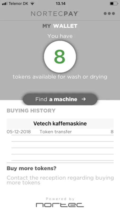 NortecPay lets you use your smartphone to pay for a unit (such as a washing machine) with an integrated NDU (Nortec Direct Unit). The app lets you communicate directly with the unit, and makes it easy to make the payment using the most popular payment apps: MobilePay, PayPal, Apple Pay and Google Pay. In Guest Mode (used at hotels and hostels), it is also possible to pay with the app’s own tokens.