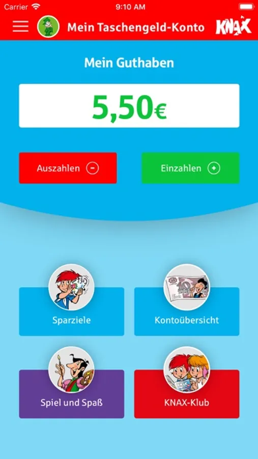 - Pädagogisch wertvolle Spiele und altersgerechte Erklärfilme zum Thema Geld runden die KNAX-Taschengeld-App für Ihr Kind ab.