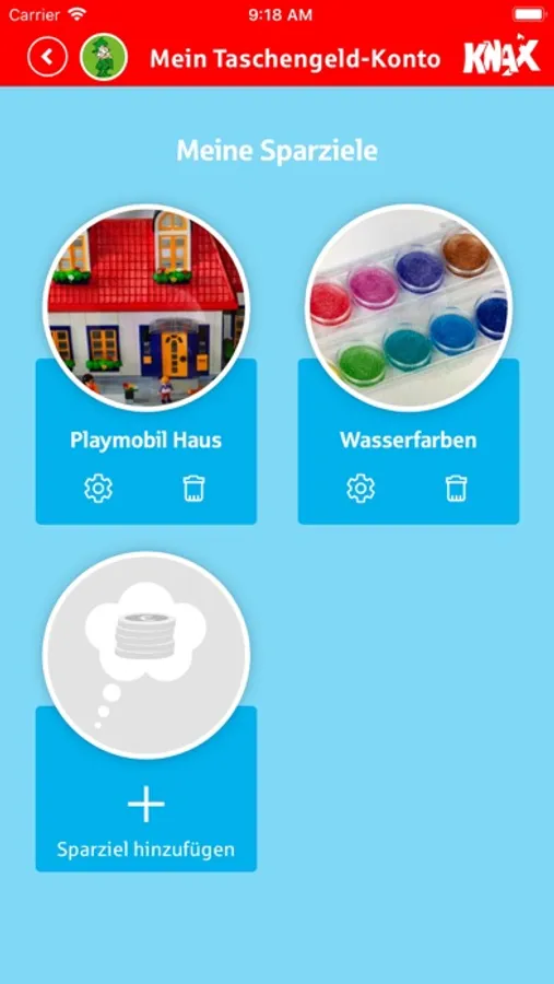 - Persönliche Wünsche können als Sparziele angelegt werden. Dadurch lernen Kinder, den Wert von Gegenständen einzuschätzen und für Kaufwünsche zu sparen.