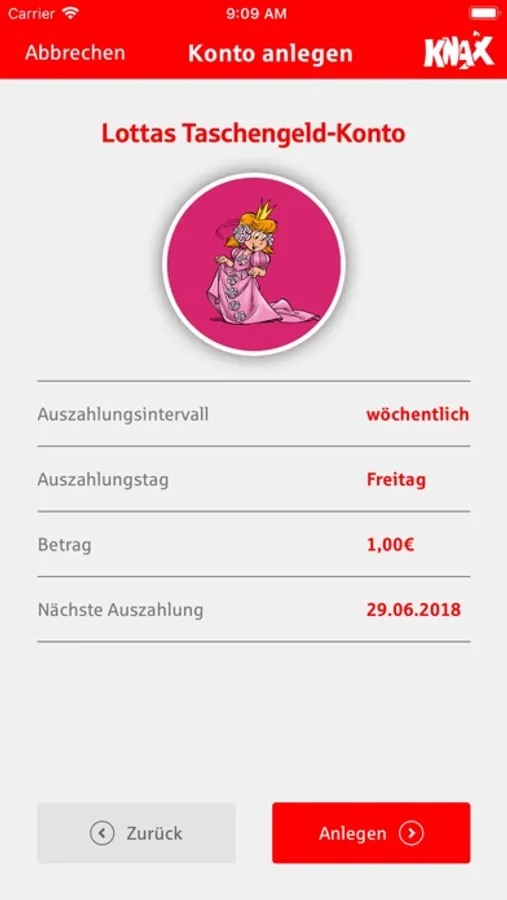 - Nach Installation der App legen Sie ein virtuelles Konto für Ihr Kind an.
