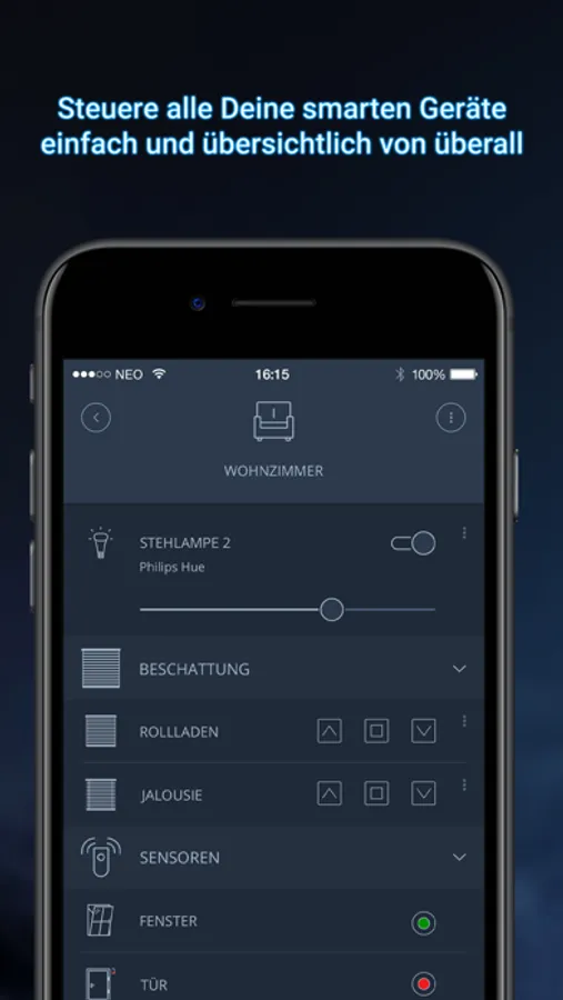 The app for your Smart Home. Keep lighting, shutters, heaters, sensors and other home and audio/video technology centrally and comfortably under your control - always, from anywhere! Just control, monitor and automate all the different brands in your home with one app.