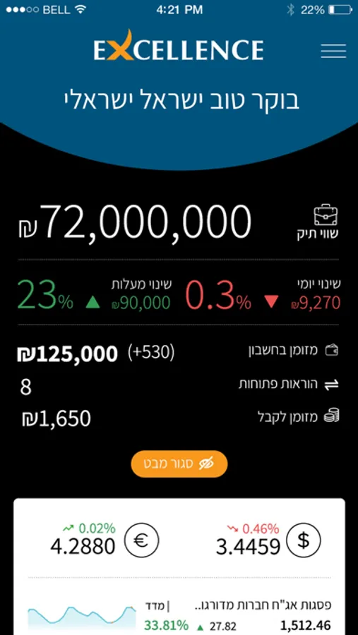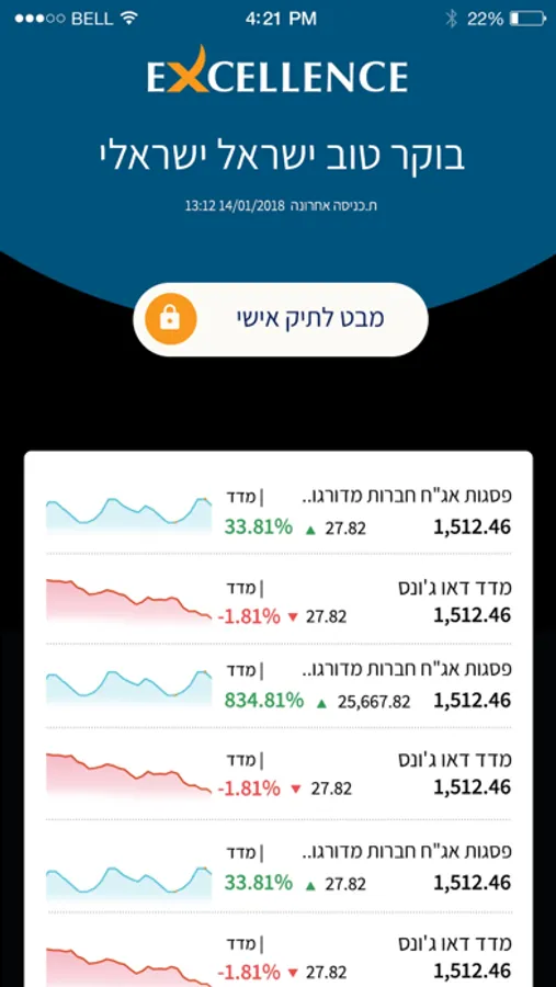 Advanced trading application for Excellence Nessuah Group customers. The application enables the user to send stocks and derivatives orders to the Tel Aviv Stock Exchange, view various screens of auto-refreshing market data and view account holdings. OrderNet, Excellence, FMR, TASE.