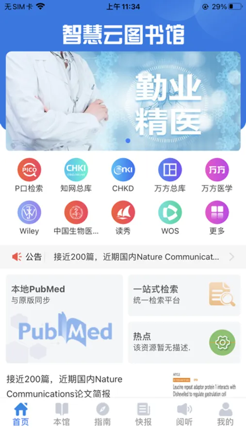 资源方面包含泉方旗下产品:PubMed引文及数据分析系统(本地PubMed)、泉方学术、鸟瞰医学、P口检索等数据库资源,除此之外还将各大高校及医院常用数据库:如万方、知网、维普、Springer、 Elsevier、Wiley等数据库进行了整合,真正意义上实现了一站式检索。
