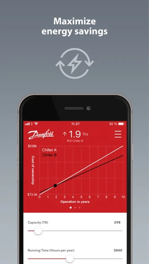 The Danfoss ChillerROI app simplifies the decision-making process by allowing you to estimate return on investment (ROI) using a few pieces of basic information. Simply enter the parameters into the app, and you’ll get side-by-side comparison that displays the expected long- and short-term costs. Then, you can choose the best chiller for the situation.