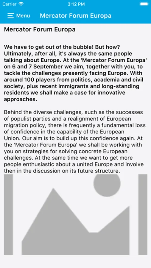 Mit der kostenlosen Veranstaltungs-App der Stiftung Mercator können Sie sich mit Ihrem individuellen Zugang über unsere aktuellen Events informieren. Sie erfahren alles über die Location und das Rahmenprogramm. Stellen Sie sich Ihren Zeitplan mit Vorträgen und Workshops zusammen. Vernetzen Sie sich bereits im Vorfeld mit anderen Teilnehmern. Nutzen Sie die App, um interaktiv über Live-Votings an der Veranstaltung teilzunehmen. Stellen Sie Fragen direkt an die Referenten und verfolgen Sie aktuelle News auf Twitter und Facebook.