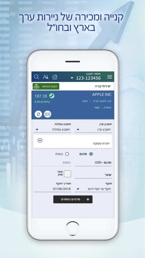 ניירות הנסחרים בארץ – כלל המוצרים, לרבות תמיכה בסוגי הוראות מורכבות (אייסברג, סטופ לוס).