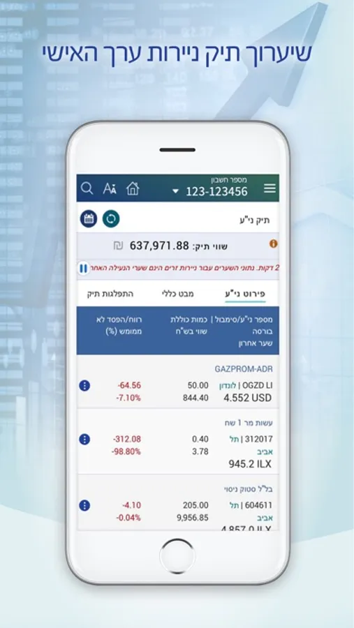 האפליקציה מתאימה למגוון רחב של מכשירים מתקדמים ומאפשרת קבלת מידע מקיף על תיק ניירות הערך ועל המתרחש בשוק ההון בארץ ובחו"ל, בכל נקודת זמן ומכל מקום, כגון :