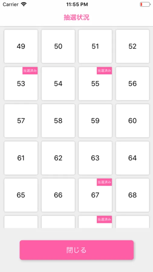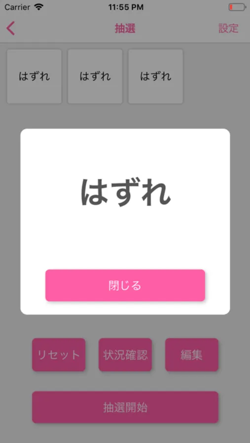 ③ランダム抽選の結果が表示されます。残った要素で再抽選可能です。