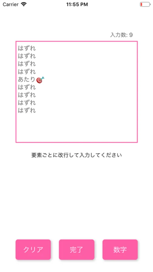 要素名+個数を指定して入力可能です。あたりが3個ではずれ7個入っている