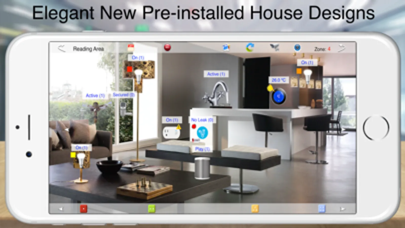 WYSIWYG (What You See Is What You Got) technology allow you to use your iPhone/iPad camera to add real rooms / devices photos / skins to be controlled by a simple touch. VR (Virtual Reality) simulate the exact actions of the real push button wall / in-line switches in your room with a set-up easier than setting a channel on your conventional TV.