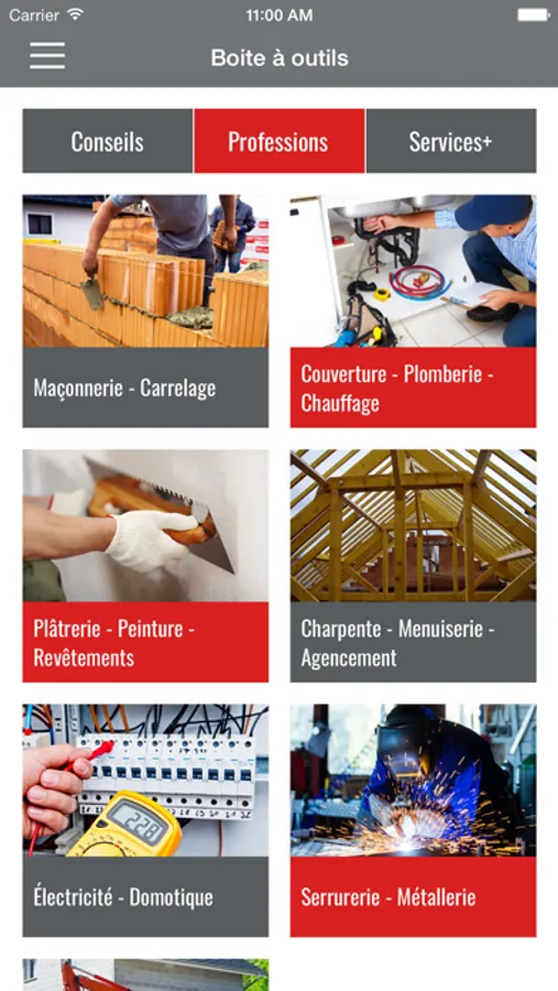 En plus du module de gestion des chantiers, l'application vous permettra d'accéder à la boite à outils : une base documentaire d'informations techniques et réglementaires classées par métier et service. La boite à outils a été conçues pour servir au quotidien les artisans du bâtiment en mettant l'accent sur la facilité d'accès en mobilité permanente.