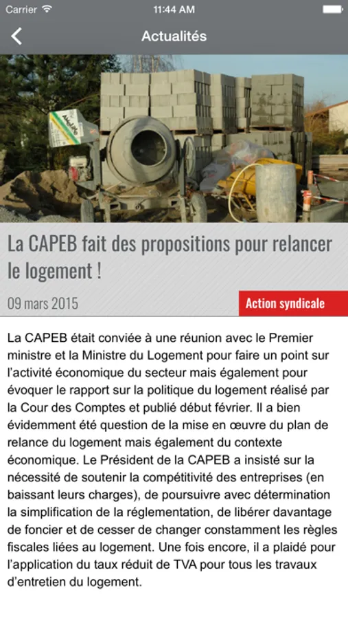 Les pushs et les actualités vous permettront d'être informés très rapidement des nouveautés réglementaires, des projets de lois qui concernent les artisans du bâtiment et toutes les actions syndicales réalisées dans le cadre de la CAPEB ou au niveau national.