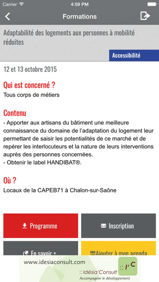 Vous souhaitez augmenter vos compétences ou celles de vos salariés ? Vous retrouverez dans l'application la liste des formations utiles à votre métier et vous pourrez vous y inscrire directement via l'application.