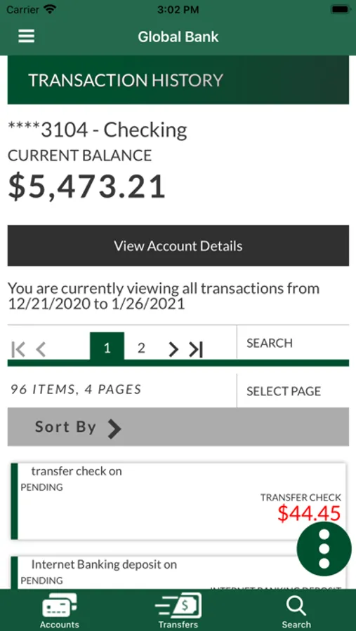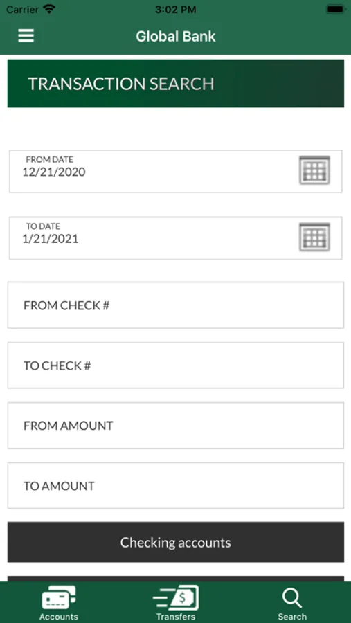 - Check your latest account balance and search recent transactions by date, amount, or check number.