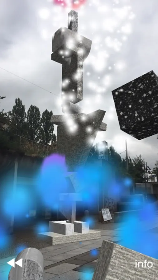 Fliegende Türme. Die App verwendet GPS Signal und Bilderkennung zur Platzierung der Stapel. Wenn die Stapel wandern oder wegfliegen, den Boden des Startpunktes scannen und ggfs. App neu starten.