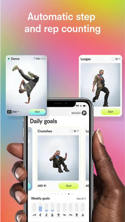 Playfitt is the fitness tracker game that gets you addicted to moving. Earn rewards with bite-sized workouts like dance, the steps you’re already taking and other easy-to-do moves.