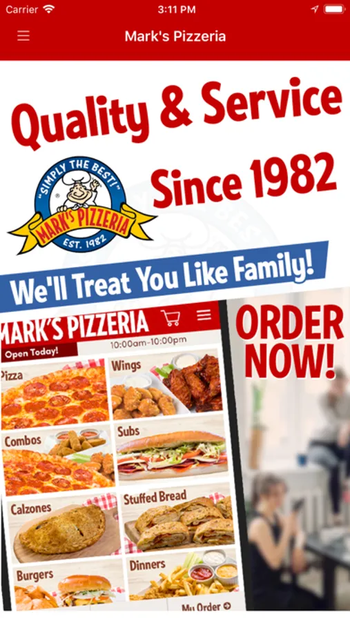 Ever since we opened our doors in 1982, Mark’s Pizzeria has been dedicated to quality and service. For over 30 years Mark’s has been committed to the promise of treating our customers like family. To continue to provide for all our customers who need to order on the go, we are proud to launch our NEW mobile ordering app. Thanks for choosing Mark’s!