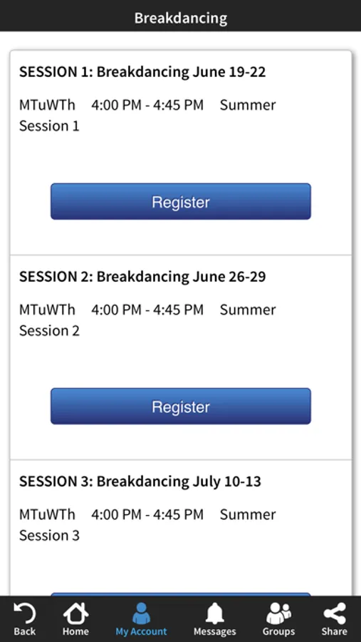 - Have a class in mind? Search by class, level, day, and time. You can register or even put yourself on a wait list.