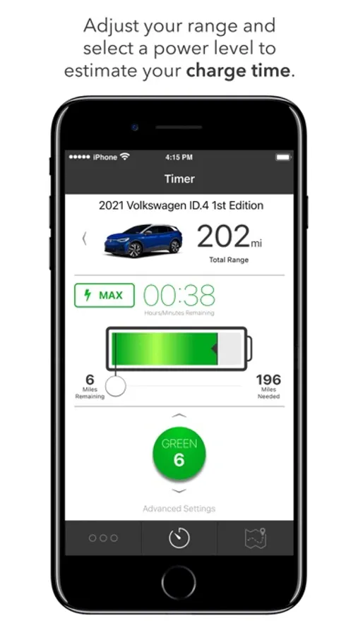 - Simply select the power level and your remaining range to estimate how much time your charge will take