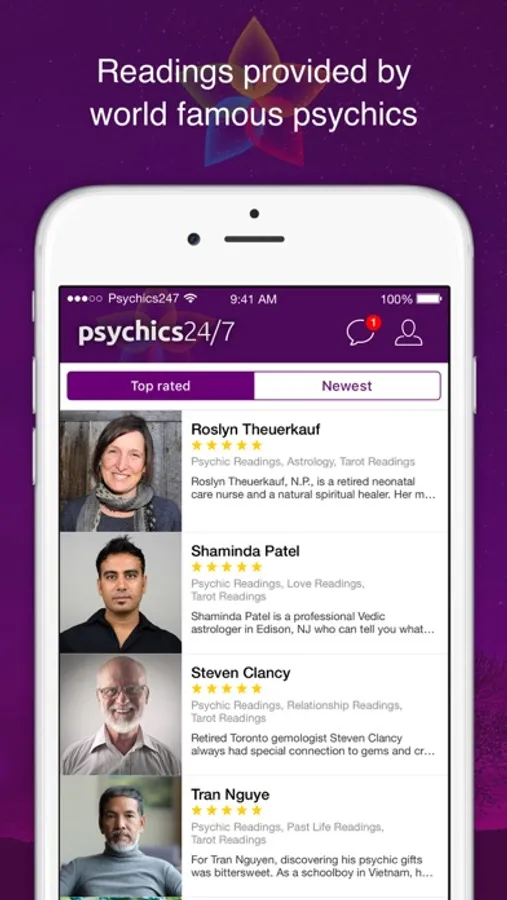 2. On home screen - tap a psychic you'd like to view or message (e.g. Barbara Wasilenko)