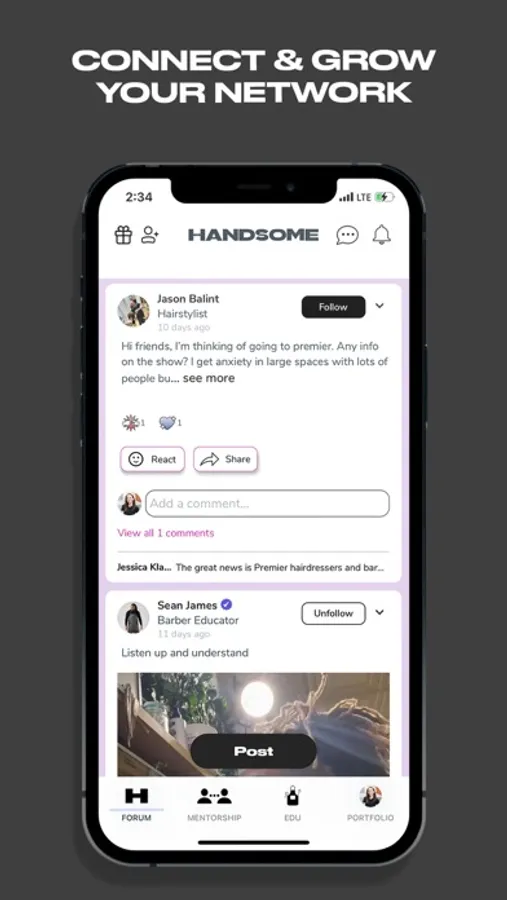 “An immersive space for hairdressers/business owners and everything in between! HANDSOME isn’t just another social media platform, yet safe space for the beauty industry.” - Gabby