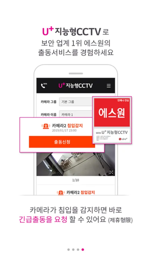 " U+지능형CCTV와 에스원 출동 서비스를 한번에 받으셔요."