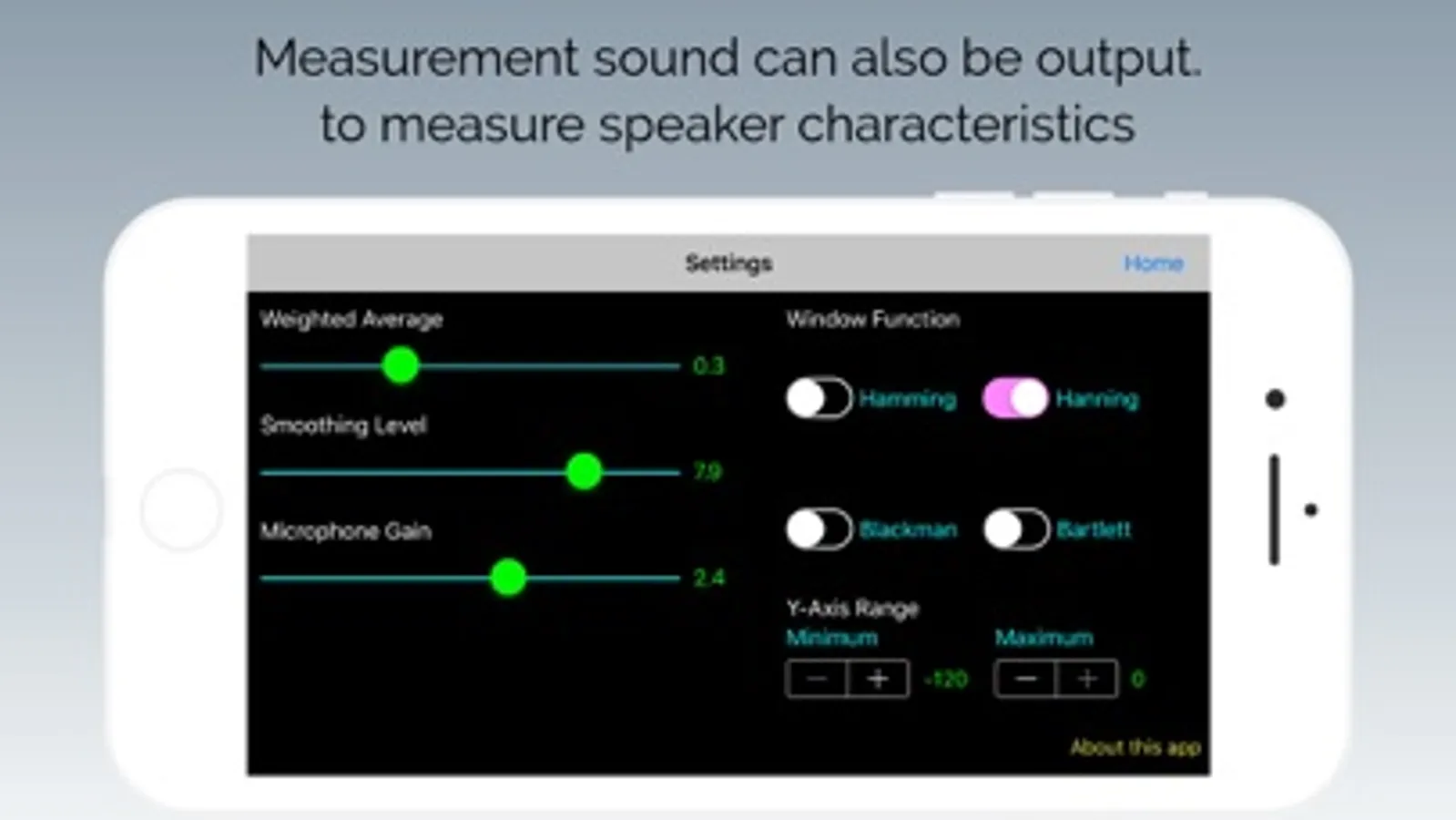 And, app can sound sweep signal for measurement for speaker etc.