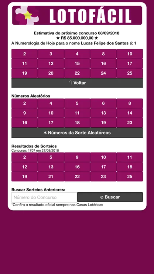 Coloque o nome e veja os 15 números da sorte através da combinação numerológica do dia com o nome.
