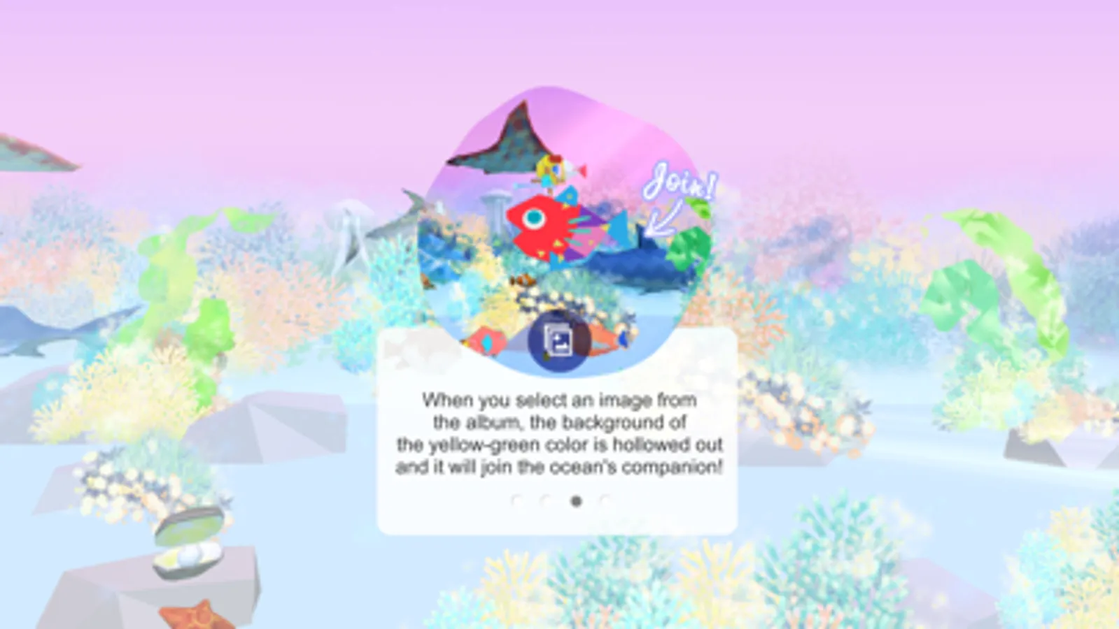 When you select an image from the album, the background of the yellow-green color is hollowed out and it will join the ocean's companion!