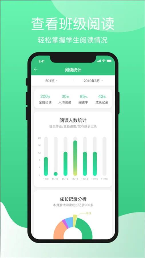 班级阅读:管理班级阅读,掌握学生阅读情况。