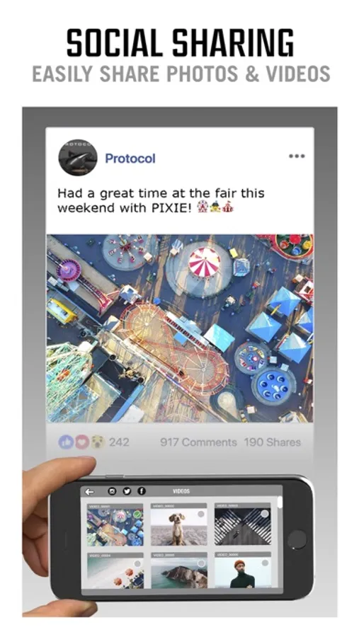 App connects smartphones to Pixie Drone via drone’s built-in Wi-Fi signal.