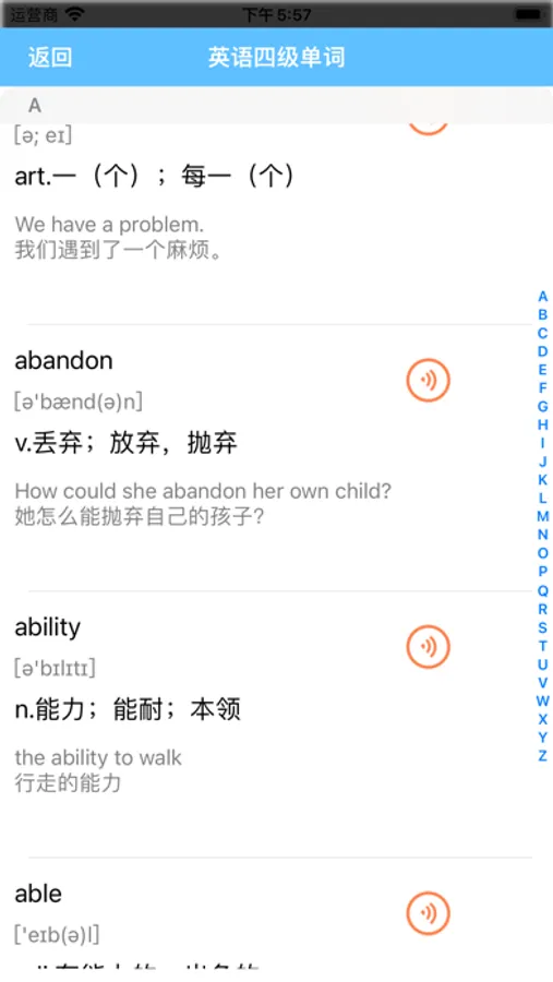 英语单词,语法词汇,四级单词,六级单词按字母顺序背诵,单词查找,单词翻译,词根记忆,单词发音等功能。
