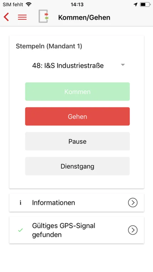 - Kommen-/Gehen-Stempelung (wahlweise mit GPS-Prüfung)