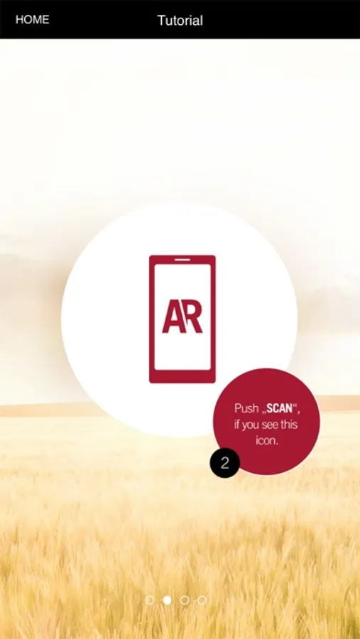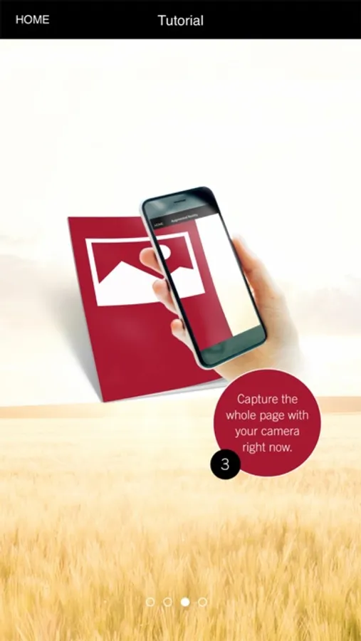 3. Open the „Case IH View“-App und push the „Scan“-Button. Hold your iPhone or iPad over the page to enable the camera recognition. Please beware of recognizing the whole scan-area and not only the Augmented Reality-symbol. Discover now how a new virtual overlay will be connected to the real world and enjoy the multimedia content.