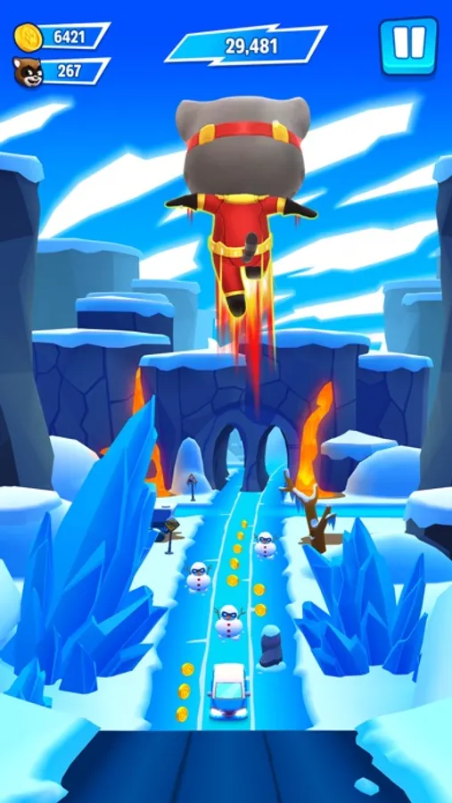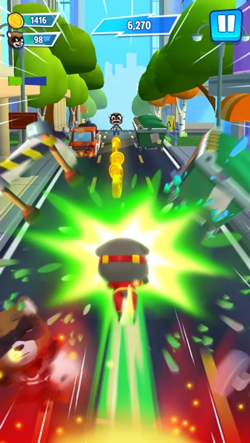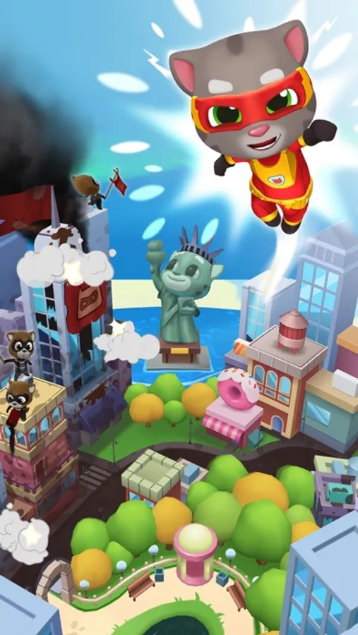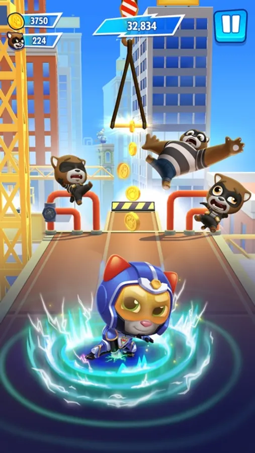 Talking Tom must run and chase down The Rakoonz and save the day. The Rakoonz have captured Angela, Ben, Hank and Ginger and it’s up to Tom to save them!