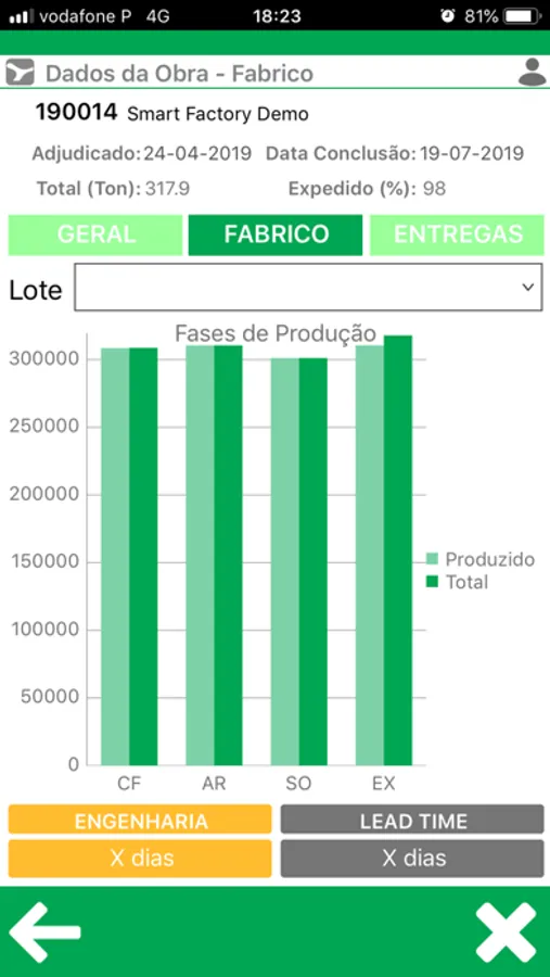 a) Conhecer o detalhe de fabrico de cada lote em cada secção e avaliar o estado de cada lote.