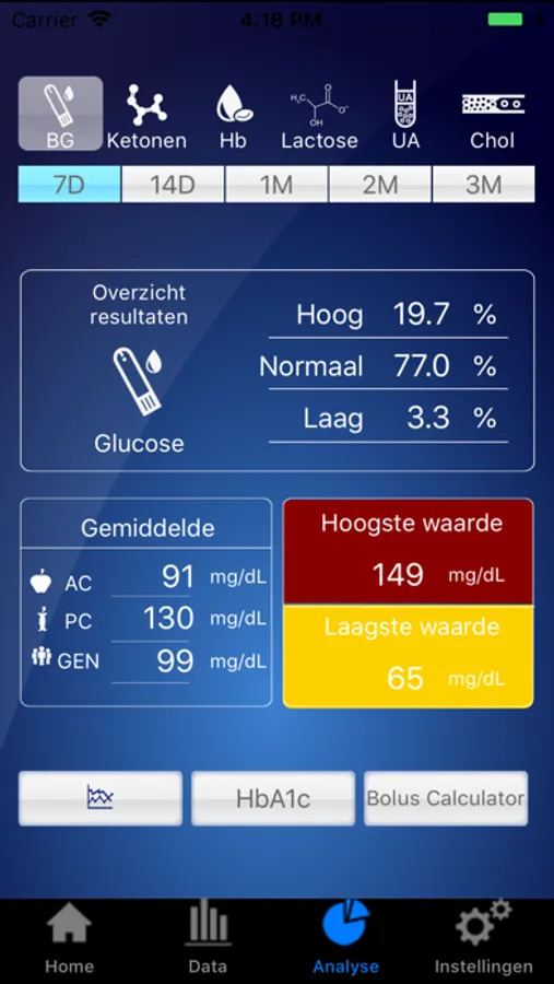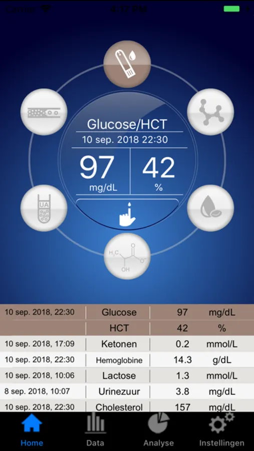 TDGlucoCheck mg/dL provide an easy-to-use interface to track several parameters: Blood Glucose, Hematocrit, Ketone, Hemoglobin, Lactate, Uric Acid and Cholesterol.
