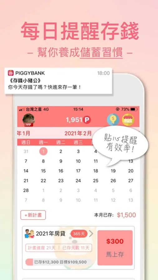 只要準備好一個撲滿,小豬公將每天帶你一起存!