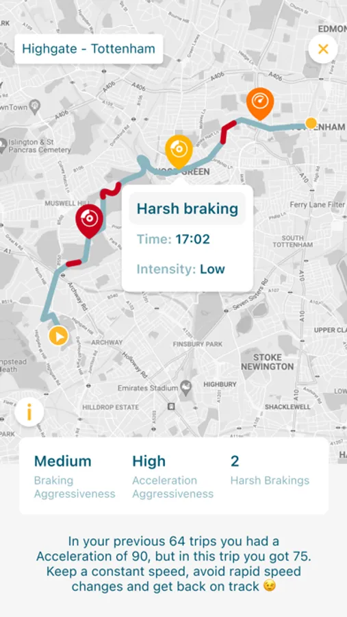 Drive Safe provides the driver with a full and detailed analysis of every trip, pointing out those areas where the driving was not ideal.