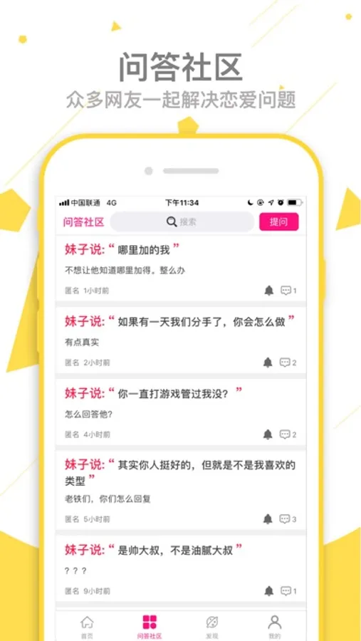 2. 问答社区提供交流平台,聚焦恋爱聊天技巧,跟有经验的人一同探讨;
