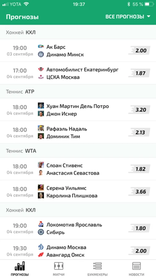 Вам хочется не только получать удовольствие от просмотра тенниса или игр НХЛ, но и реальный выигрыш у лучших букмекеров? Вы хотите быть в курсе рейтингов БК (букмекерских контор), знать показатели всех коэффициентов, почувствовать на себе, что такое тотальное везение и примерить VIP статус? Скачивайте новое приложение и поверьте в свою удачу!